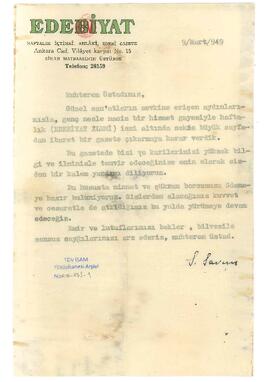 Rıza Tevfik'e Chroniques Littéraires'den mektup