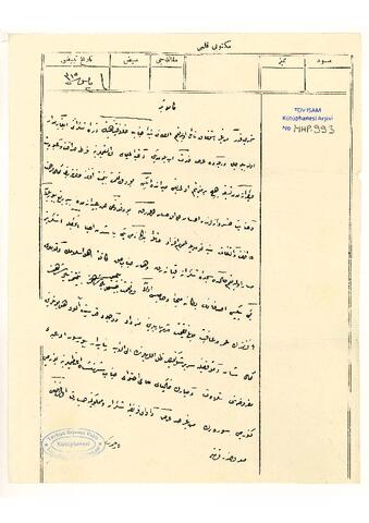 Hüseyin Hilmi Paşa'nın Kâmil Bey'e, teşekkür amaçlı gönderdiği tahriratı.