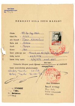 Timur Kocaoğlu'na ait öğrenci sıla izin kağıdı.
