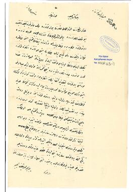Rumeli Vilâyât-ı Selâsesi hakkında Rusya ve Avusturya devletleri tarafından verilen dokuz maddelik teklif hakkında Hüseyin Hilmi Paşa'ya Sadaret'ten gönderilen tahrirat.