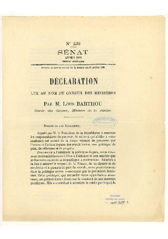 Fransa'nın iç meseleleri ile ilgili senato görüşmelerinin tutanakları.