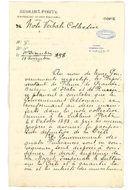 Girit ile ilgili düvel-i erbaa ve Osmanlı arasındaki ilişkiler, Yunan Prensi Georges'in Girit valisi olmasıyla alâkalı belge.
