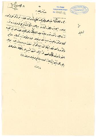 Hüseyin Hilmi Paşa'nın görevine sadakatle devam edeceğine dair Başkitabet'e gönderdiği tahrirat.