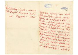 Vali Paşa'nın vefatından dolayı Hüseyin Hilmi Efendi'nin memuriyet durumuna dair Namık Kemal'in Hüseyin Hilmi Efendi'ye gönderdiği mektup.