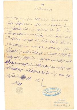 Bulgar ve Sırp halkı, Rusya ile Avusturya devletlerinin, Kosova ve Manastır vilayetlerine bağlı olan İpek, Prizren ve Priştine sancaklarında Hıristiyan halkın çoğunlukta olduklarını iddia edip bu sancakların adı geçen vilayetlerden ayrılması ve Osmanlı Devleti'nden istenen diğer taleplere dair Şifre Kâtibi Asım Bey'e tahrirat.