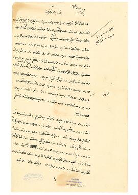 Rumeli Vilâyât-ı Selâsesi'ndeki ıslahat kararlarına dair Rusya ve Avusturya sefirleri tarafından verilen muhtıraya binaen söz konusu sefirlerle yapılan müzakereler neticesinde kabul edilen maddeleri (Mürzsteg Tasarısı) havi Sadaret'ten yazılan talimat.
