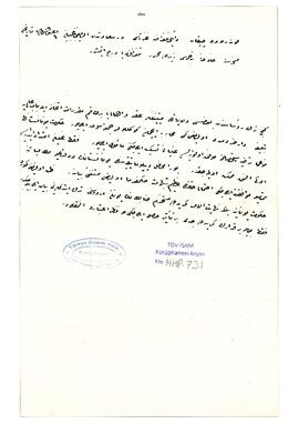 Abdülmecid Efendi, Prens Seyfeddin, Damad Şerif Paşa ve John Godolphin Bennet arasında yapılan hanedana ait olup Yunanistan’da bulunan emlâke dair sözleşme metni sureti.