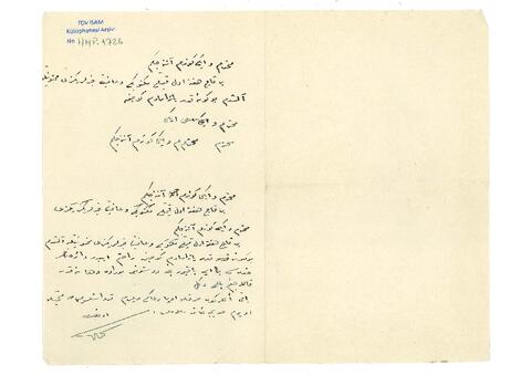 Hüseyin Hilmi Paşa'nın eşi Zehra Hanım'a oğlu Kemal imzalı mektup.